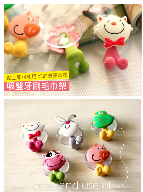 Cute 版吸盤牙刷毛巾架(款式顏色隨機出貨)