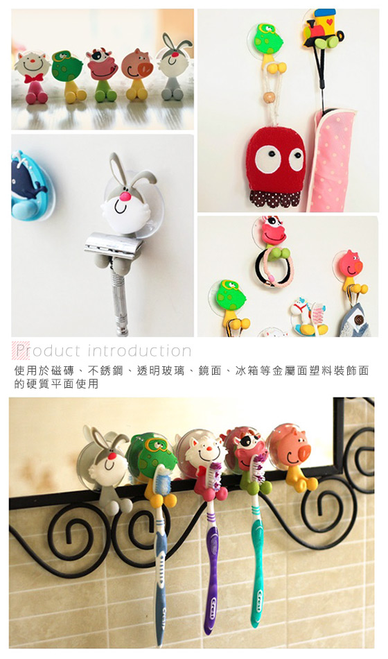 可愛童趣的圖案,搭配上大大的吸盤,不只幫助居家環境整齊,更能裝飾家裡氛圍,超強的吸附力,不論怎麼拉都不會移動!
